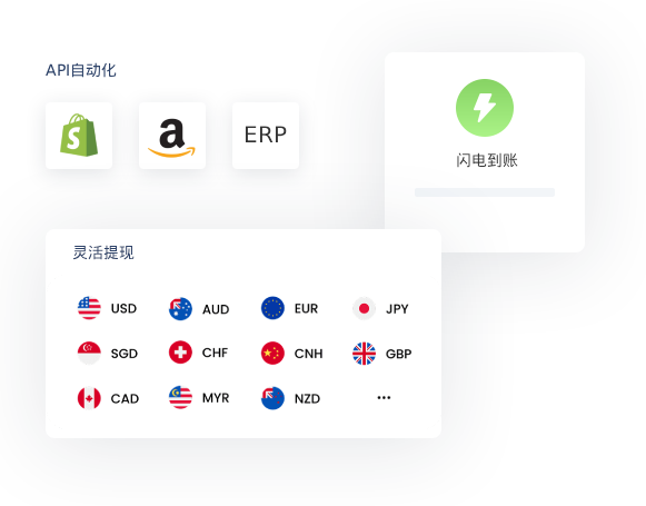 支持30天汇率锁定,规避汇率波动风险 多币种直收:
